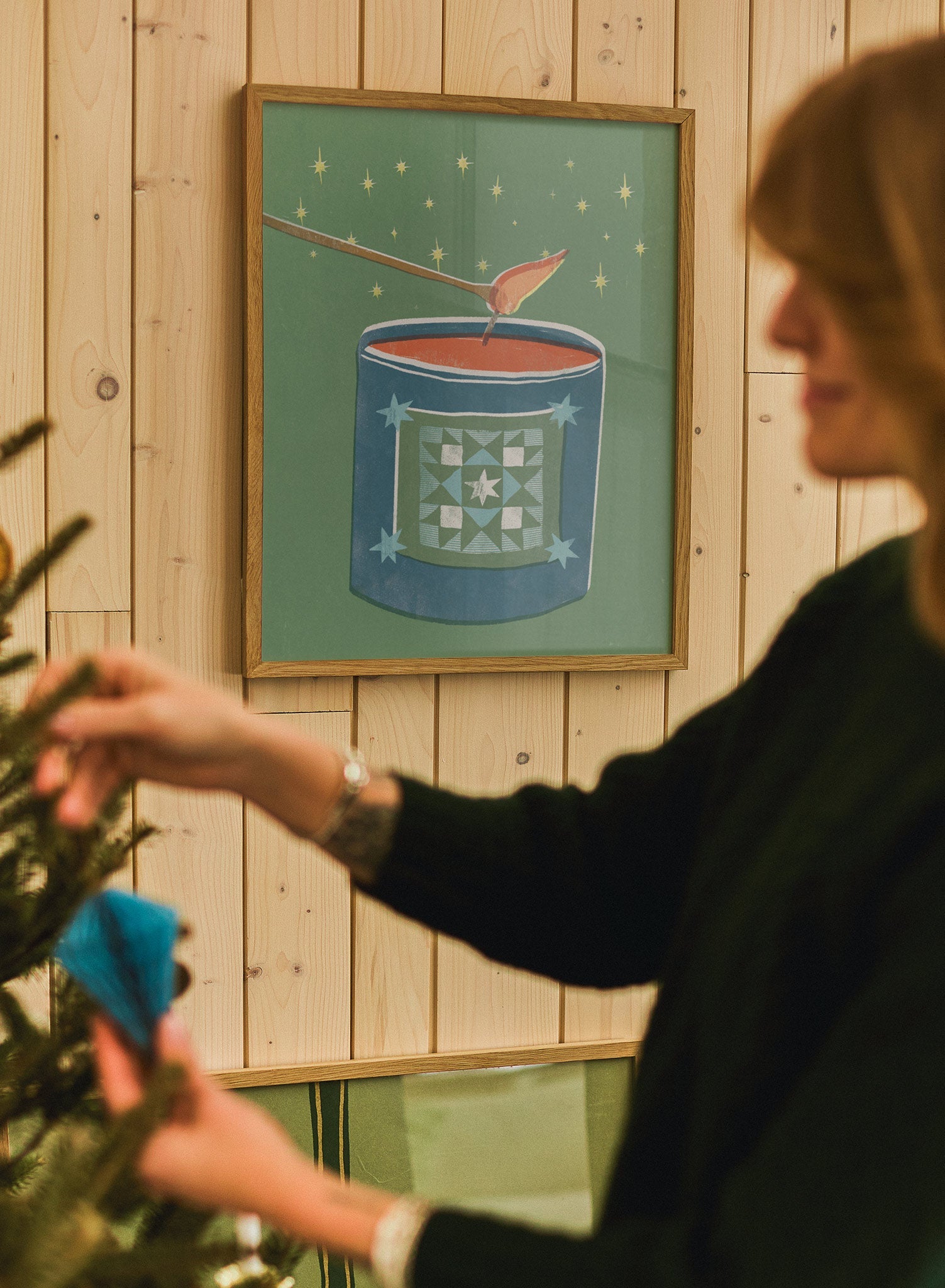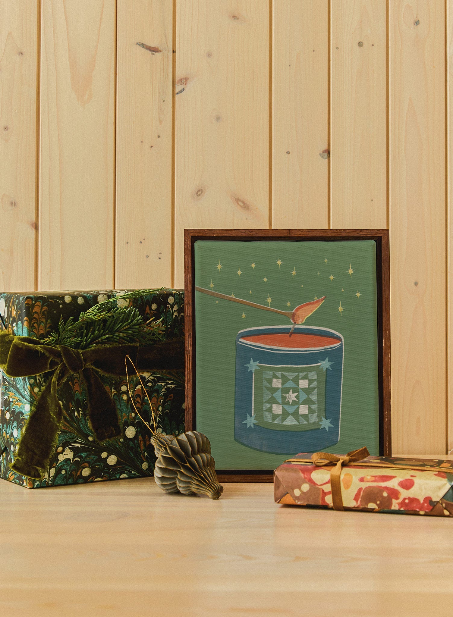 Perfect for a kitchen nook or a cozy corner in the living room, this print pairs well with rustic wooden accents or soft, neutral textiles. Consider complementing it with other winter-themed decor, such as knitted throws or vintage ornaments, to create a snug, inviting environment. Whether displayed solo or as part of a gallery wall, it brings a touch of seasonal warmth to your home.